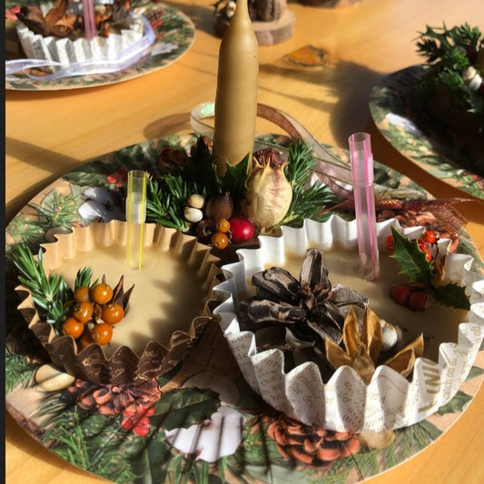 【12/19 開催イベント】「クリスマスに飾れる木の実の台座付き蜜蝋キャンドル&森の香りのアロマワックスバーづくり」
