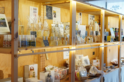 日本温浴研究所のオリジナルブランド「ルウㇽディマン」や「YUNIHA」などのバスグッズやハーブの入浴剤なども並んでいます。ギフトにもピッタリなので、お風呂に入らなくてもお買い物だけでも楽しめますよ。